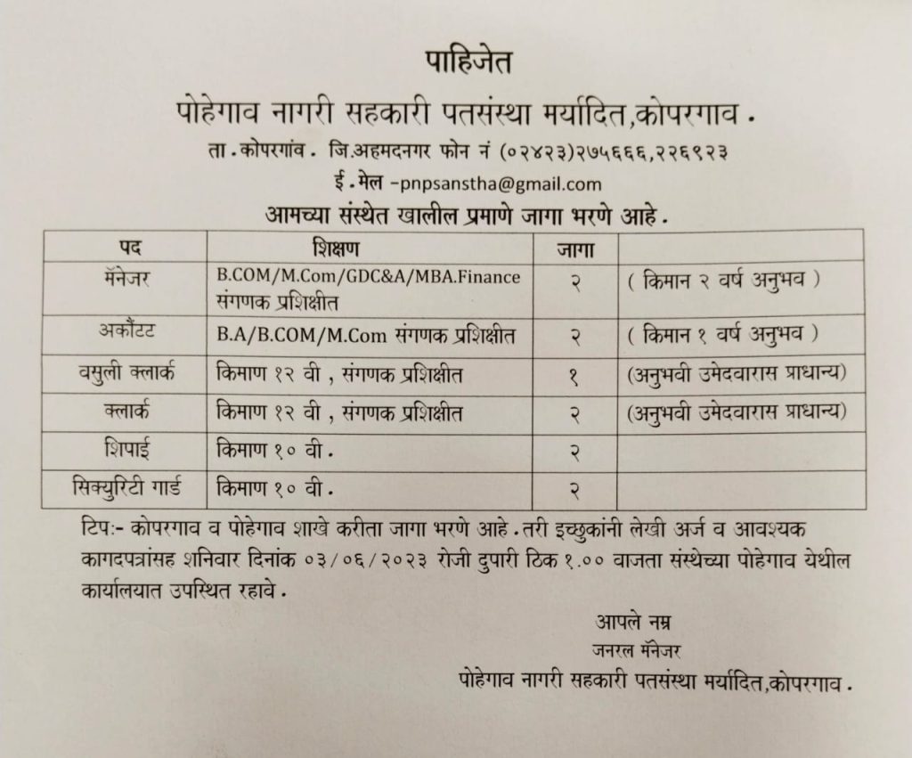 पोहेगाव नागरी सहकारी पतसंस्था मर्यादित ,कोपरगाव .
